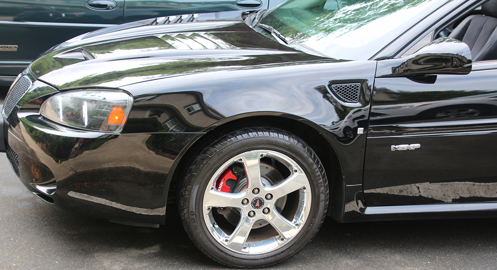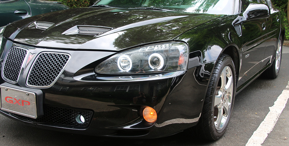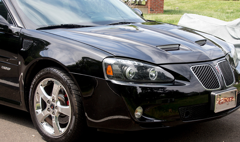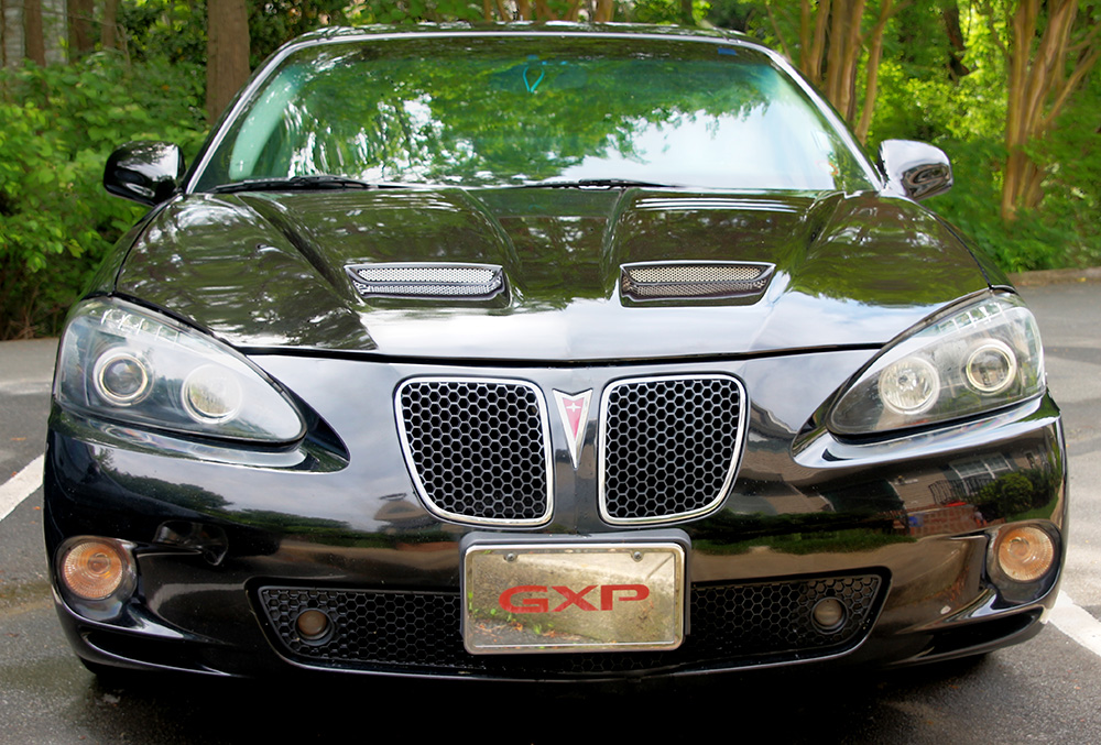 I bought the GXP and a lot had changed in my life, I was single at the time, just bought a townhouse, making a low salary at my job at the time, no savings – I really just wanted to get tint for the car and call it quits. As time went by, I added the things I love in the GTP, like the projector halo CCFL headlights, LED tail lights, L5 solobaric sub, red interior lights, etc. I thought the Infero Ram Air Hood was just a dream, once you factor in the cost, paying for it and finding a paint shop (shout out to Bob at Affordable Auto Painting, Raleigh, NC) that will assist you with the freight delivery and the cost of paint and blending, it becomes further out of reach. I’d been thinking about it on and off for about a year, seriously for about 5 months. I knew myself and I knew I would obsess about it until I got it. Well, I finally did get it and I’m still obsessing, but in a different way – about how cool it looks and it blends in with the side panel grills. The Infero Ram Air hood for the Pontiac Grand Prix looks aggressive and goes great with the sound of a V8.